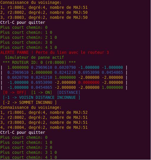 Pour activer la simulation de pannes, lancer routeur –P